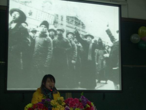 首先主持人宣布比赛开始及介绍嘉宾与评委,之后就是同学们满怀激情的演讲,活动中,选手们以激情的朗诵与讴歌 ,让在场的嘉宾及观众都受到了感染并为之动容。他们缅怀了英勇牺牲的烈士,激励了同学们的热情。最后,欧阳婷同学以优秀的成绩荣获第一名,戴丽琴和李想成同学分别获第二、第三名。虽然1935年12月9号到今天已经过去了74年,但烈士的爱国精神会让我们永远记在心中。这次演讲比赛之后,相信同学们在以后的生活当中会更好的学习那些烈士的爱国精神,也一定会在国家危难当头挺身而出。