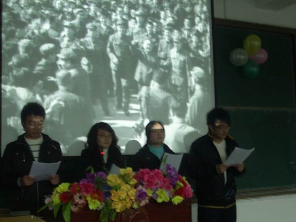 为了纪念“一二.九”运动,弘扬伟大的爱国精神,信息工程系学习部特举办的“一二.九诗歌朗诵比赛”于下午六点半在B205教室拉开帷幕,参加此次的嘉宾有系主任张首杰老师、学工主任宋虹老师及各班班主任。