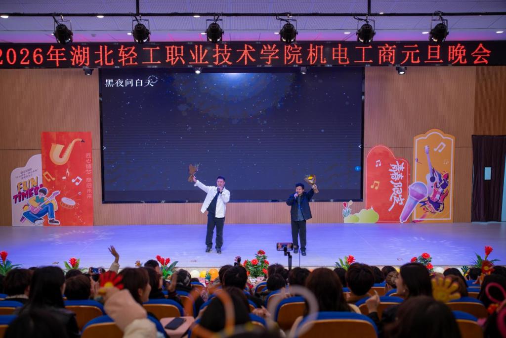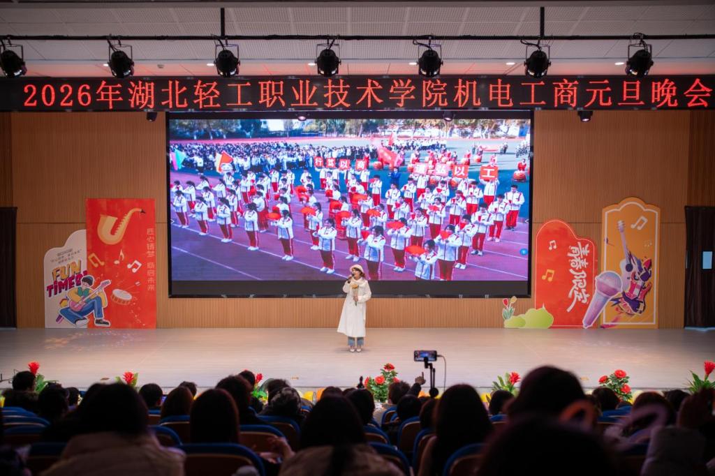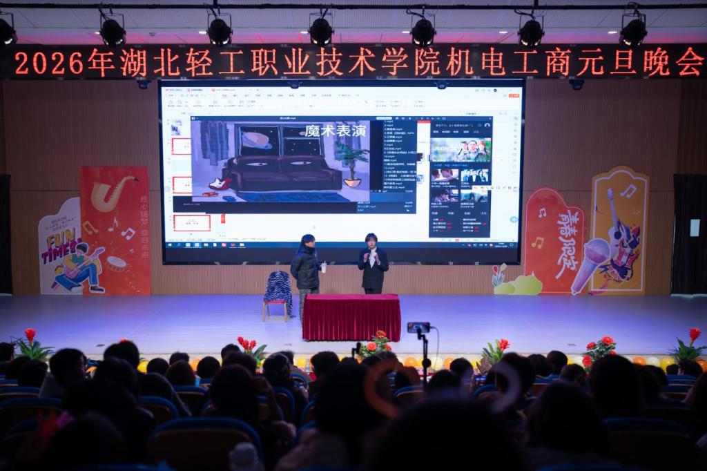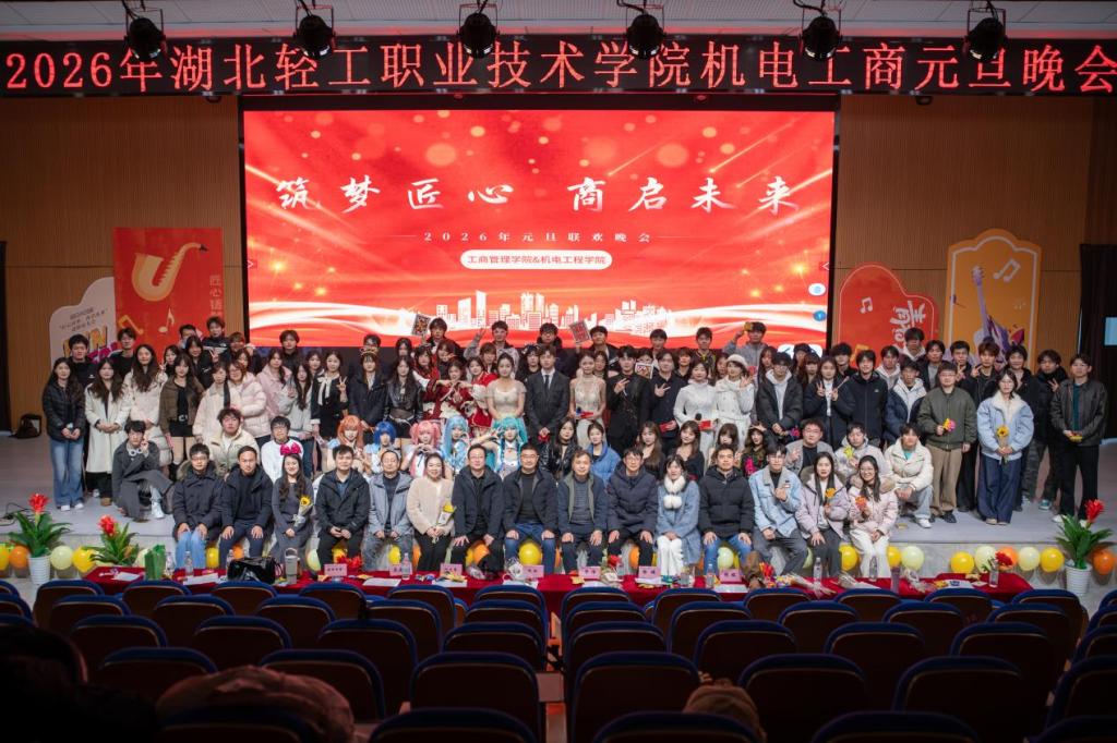 (通讯员 王冰姿)12月29日晚,湖北轻工职业技术学院阳光校区报告厅内洋溢着欢声笑语,工商管理学院与机电工程学院联合举办的“匠心筑梦·商启未来”2026元旦联欢晚会在此温情上演。两个学院的师生携手相约,用歌声、舞蹈、笑声与掌声,共同点亮了这个属于青春、友谊与希望的夜晚。