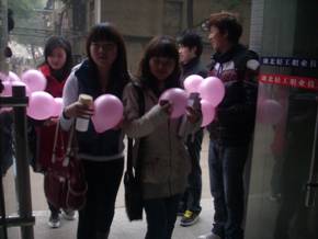 本次活动从写祝福、送礼物的形式展开。早上7点半,我系学生会干部就在教学楼门前向每一位女同胞送上一个粉红色的气球衷心的祝福她们女生节快乐,女生们美好的一天就从这里开始。中午在大学生活动中心门口,让女生在象征幸福的彩色便签上写下自己的愿望,男生也可以写祝福语送给女生。穿着幸运颜色上衣的女孩将获得礼品一份,女生节当天过生日的女生还可凭身份证领取一份生日礼物!活动不仅受到我系