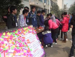 (中午在大学生活动中心,女生们领取礼物,写祝福帖)