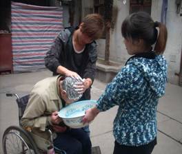 (帮老爷爷洗头)                 (为老人们打扫房间)