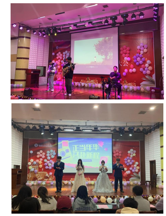 晚会由吉他社一首《花海》拉开序幕。音乐响起,熟悉的旋律瞬间引爆现场气氛。整场晚会分为“展风采,新生新形象”“抒意气,青春正当时”“悦征程,同心逐梦路”三个篇章,展现工商学子的青春风貌与梦想。