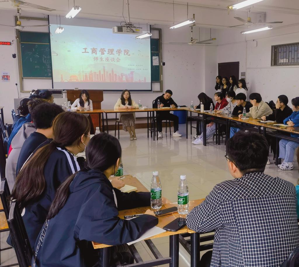 (工商管理学院 朱棣文讯)为进一步推进工商管理学院“下基层、察民情、解民忧、暖民心”实践活动,确保我院学生教育管理工作取得实效,于11月9日中午,在B403教室召开工商管理学院师生座谈会。工商管理学院党总支副书记欧阳竹君,辅导员吴岳臻、朱棣文及全院各班级代表参加座谈。