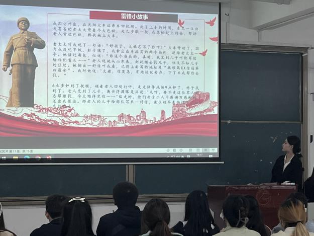 本次党课讨论首先由团总支书记邓雨微向同学们讲述雷锋精神的意义与雷锋月的由来,使同学们进一步了解雷锋精神的意义。通过雷锋小故事,展现雷锋同志的无私奉献,为国捐躯的精神。紧接着全体成员诵读雷锋精神赋。