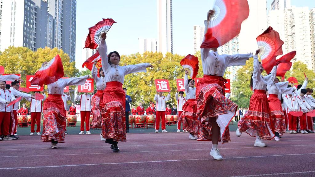 (工商管理学院 魏熊征宇讯)秋阳正好,风拂校园。11月13日—14日湖北轻工职业技术学院迎来了第二十届田径运动会。上午8点,伴随着清爽秋风与师生们的期待,运动会开幕式正式拉开帷幕。入场环节中,工商管理学院方阵惊艳亮相——同学们手持色彩明艳的折扇,伴随着激昂悠扬的《万疆》旋律翩翩起舞。扇面开合间,既有传统文化的典雅韵味,又饱含青年学子的蓬勃朝气,整齐划一的动作与饱含深情的演绎,赢得了现场师生的阵阵掌声,成为开幕式上一道亮眼的风景线。