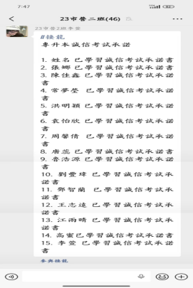 此次系列线上主题班会,实现了23级相关专业专升本考生诚信教育全覆盖,进一步强化了法治意识、纪律意识与诚信意识,为我院 2026年专升本考试安全、平稳、顺利举行奠定坚实基础。愿全体考生以诚信为笔、以实力为墨,从容应考、不负努力,顺利实现升学梦想!